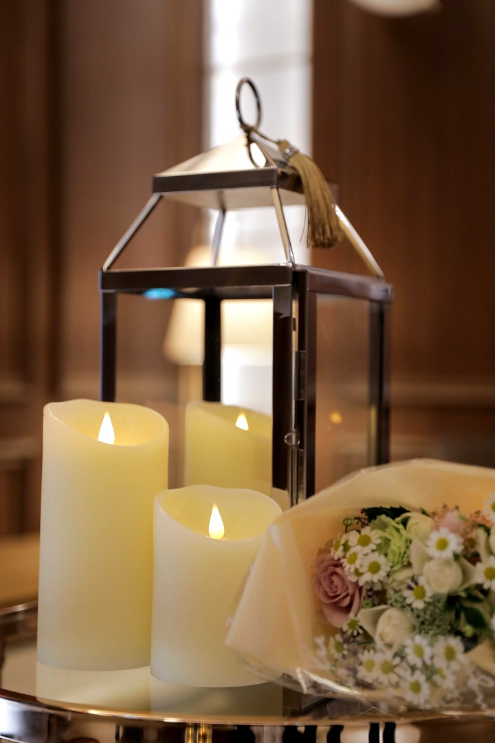 写真のように、キャンドルなどでエレガントで大人の雰囲気を演出することもできます✶