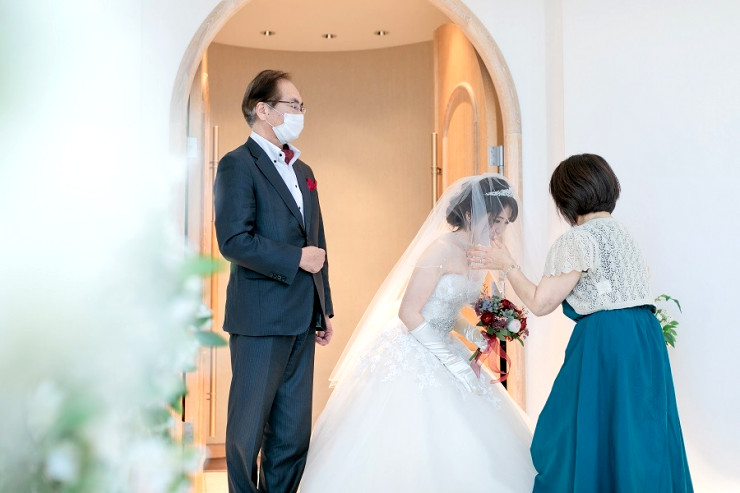 そして花嫁の最後のお支度ベールダウンをお母様にしていただました