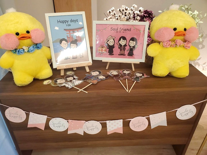 お客様によってグッズの雰囲気やテイストも異なり、前撮りのお写真や好きなキャラクター、幼少期のお写真等を飾る方もいらっしゃいます^^