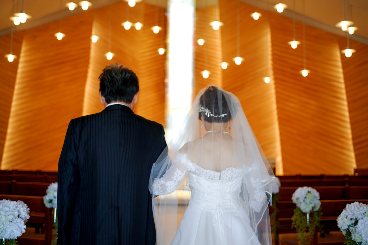 ご新郎さまは、先にご入場をしてご新婦さまを待ちます