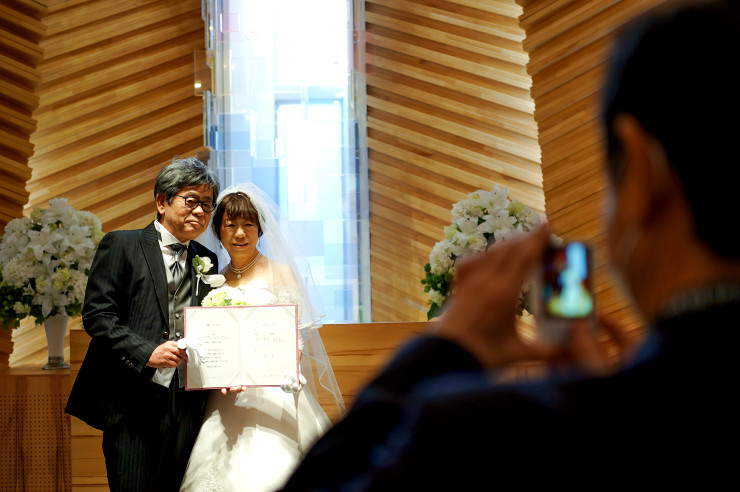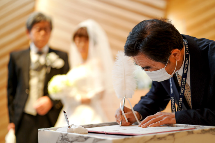 指輪の交換の後は、結婚証明書へサインをしていただきますが…