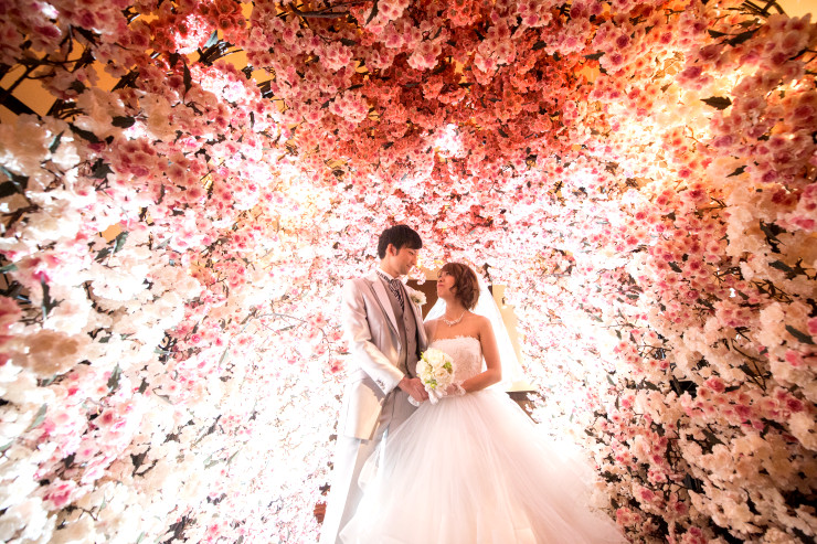 たくさんの桜に囲まれて、春らしく優しい雰囲気が伝わりますね♪