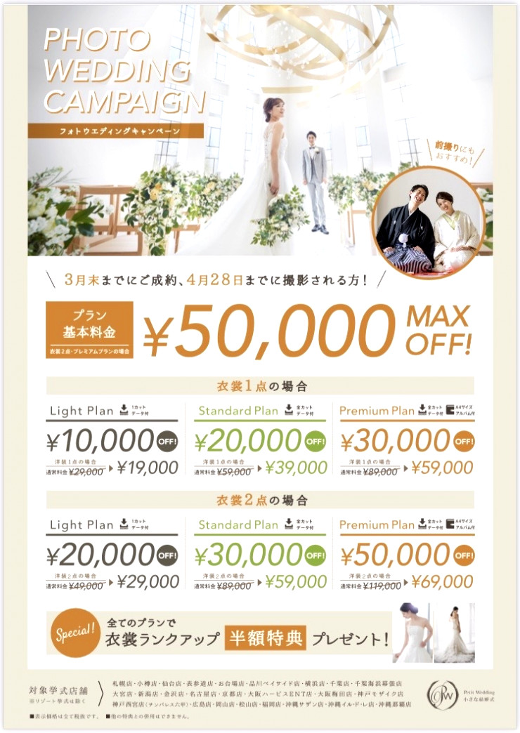 今月限定申し込みで4月撮影の方のみ最大5万円OFFキャンペーンを実施しております!