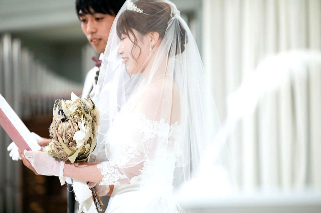 笑顔が素敵なおふたりの、笑顔あふれる挙式の様子をお伝えします。