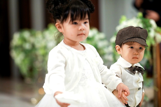 小さなゲストに、指輪を運んで頂きました。