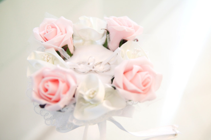 リボンで指輪を結ぶのは「永遠の愛を約束する」という意味もあるとのこと。