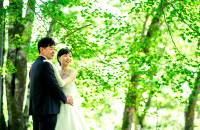 ご両親様に見守られてお式は厳かに進みました。このときの雰囲気は皆様の記憶に永く永く残るでしょう。そしてお式のあとはムーゼの森でロケーションフォト。深呼吸したくなるような緑の森で、おふたりの晴れの日の姿をたくさん残して頂きました。