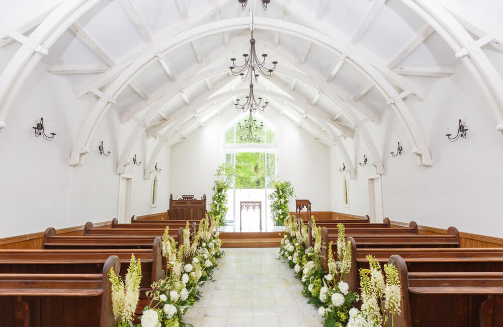 東京からのアクセスが抜群で、四季折々に豊かな表情を持つ那須の大自然の中で叶えるのは、赤レンガの外観が特徴的な「スイート・メリロット教会」での結婚式。森に向かって続くバージンロードを進むと、輝く陽光がおふたりを優しく包み込んでくれます。また、那須の山々を見渡す開放的なガーデンウエディングや、森の中で誓うフォレストウェディングへのアレンジも可能。雄大な自然の中でおふたりらしい特別なひとときを。