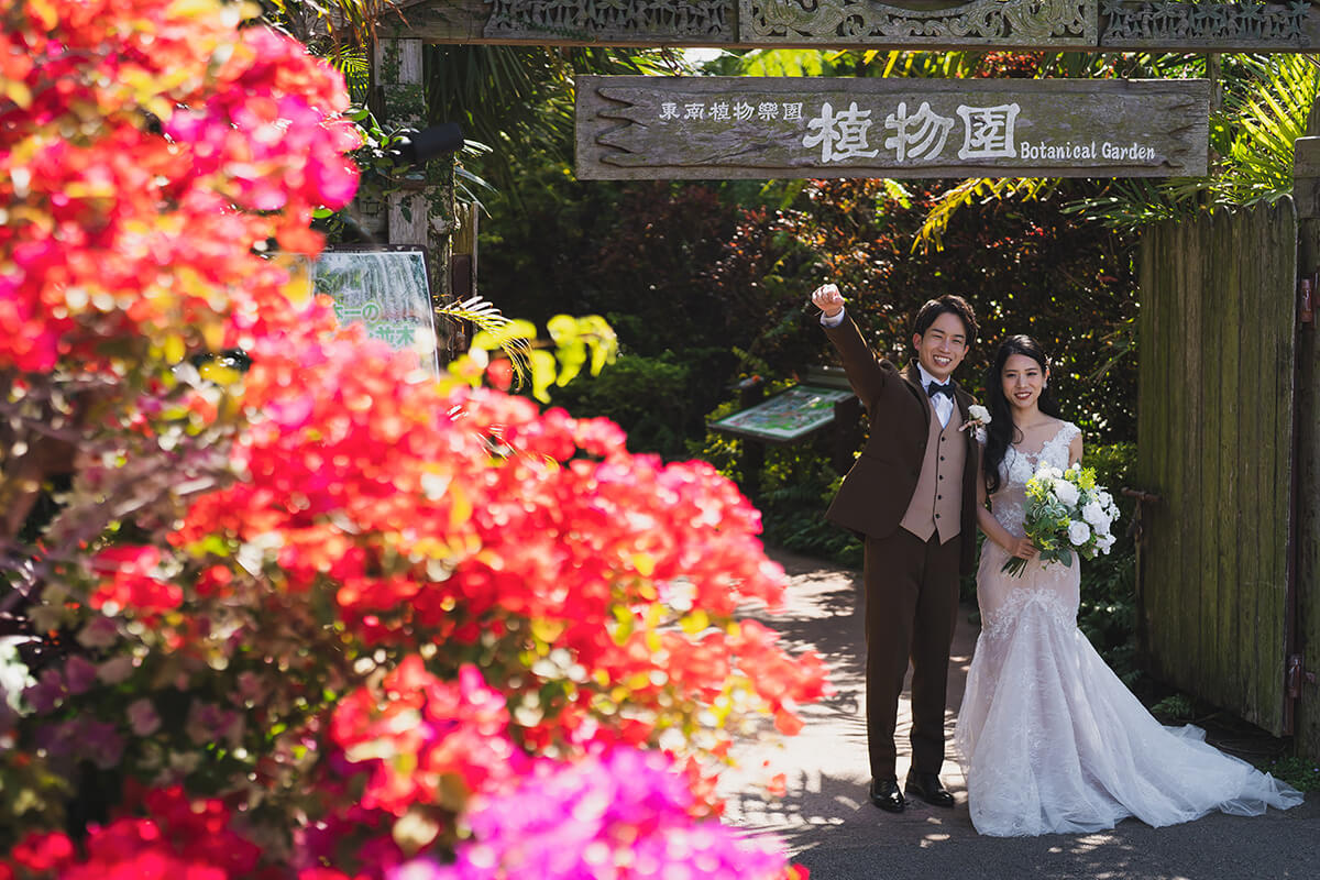 沖縄の爽やかな風と開放的な雰囲気の中、家族の笑顔に囲まれた特別な式が行われました。夜のガーデンパーティーも非日常的で楽しいひとときで、素晴らしい思い出が積み重なりました。 挙式だけでなく、美しいロケーションフォト撮影も通じて、沖縄での素晴らしい思い出を永遠に刻んでいただけます。