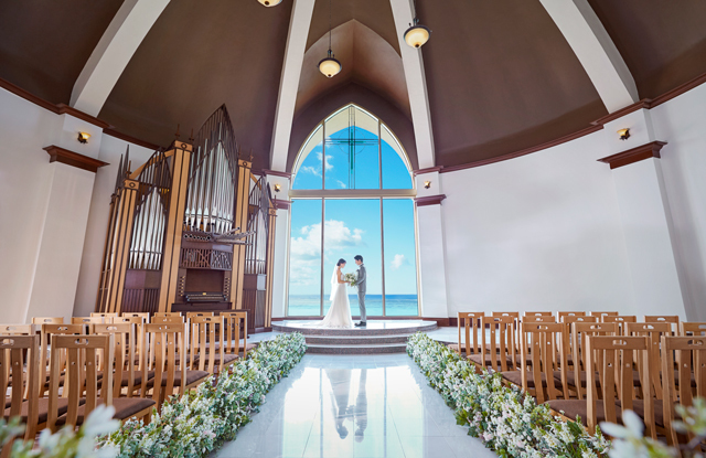 太陽に照らされて真っ白な砂浜と青い海のコントラストが美しい南国の楽園、グアム。 5つ星クラスの客室とサービスを提供するロッテホテルグアムは、 ビーチフロントの恵まれたロケーションにあり、青い海とパウダーサンドのビーチが目前に広がります。 アクアシンフォニーチャペルは内観には優しい温もりを醸し出すモクが使用され、天井は古典的なドーム型に設計されており、 グアム最大級のパイプオルガンがチャペル全体を美しい音色で包み込みます。 心地よいグアムの風を感じながら太陽、海、そして空に祝福されるリゾートウェディングがここでは叶います。