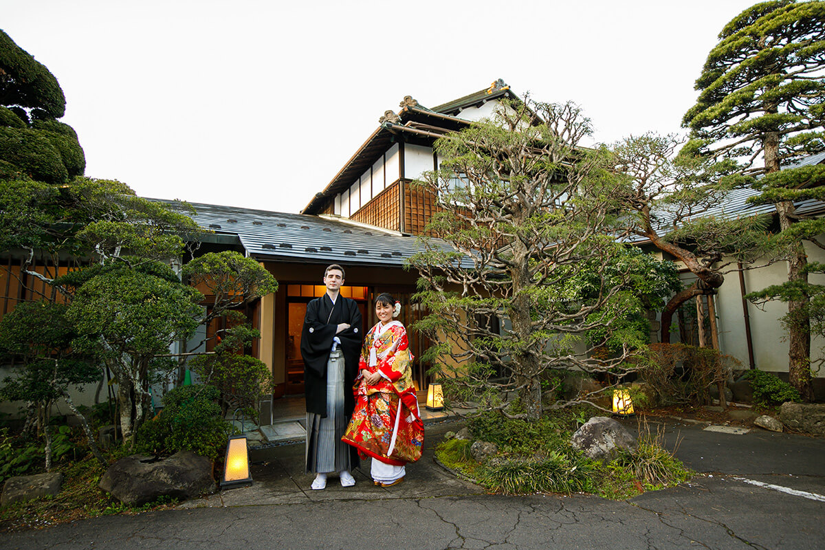 懐石料理 東洋館にてご家族に見守られて挙式されました。落ち着いた和婚の雰囲気の中、海外のご家族ともビデオ通話でつながり、遠く離れていても祝福が届く感動の時間に。