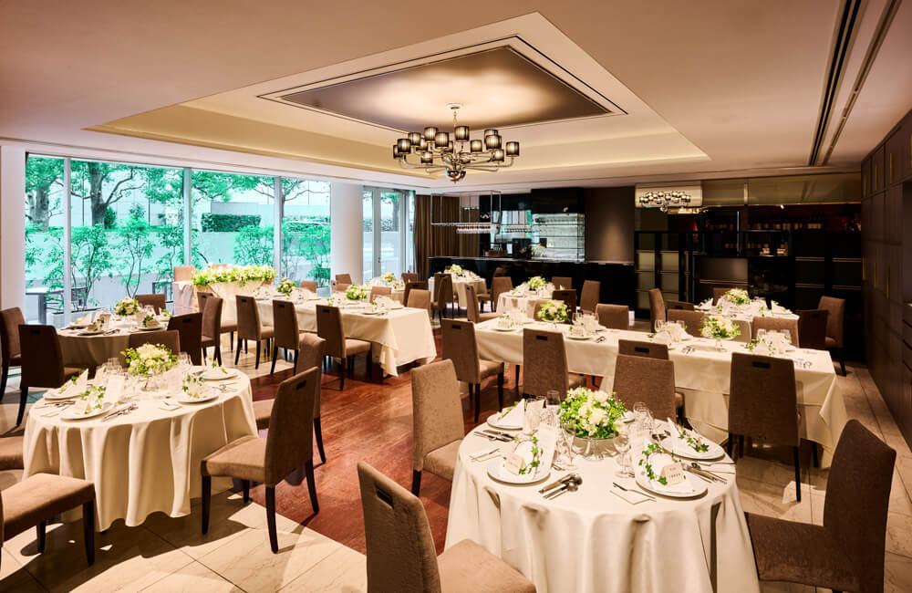 溜池山王駅直結、永田町や赤坂からも徒歩圏内。フレンチの鉄人としてテレビ出演多数の有名シェフ・坂井宏行氏のお店です。高級レストランながら店内は開放的でくつろげる雰囲気。和の素材や技法を取り入れた料理は年配のご家族にも好評です。東京駅からもタクシーで来やすく、さらにホテル直結なので遠方ゲストも安心。