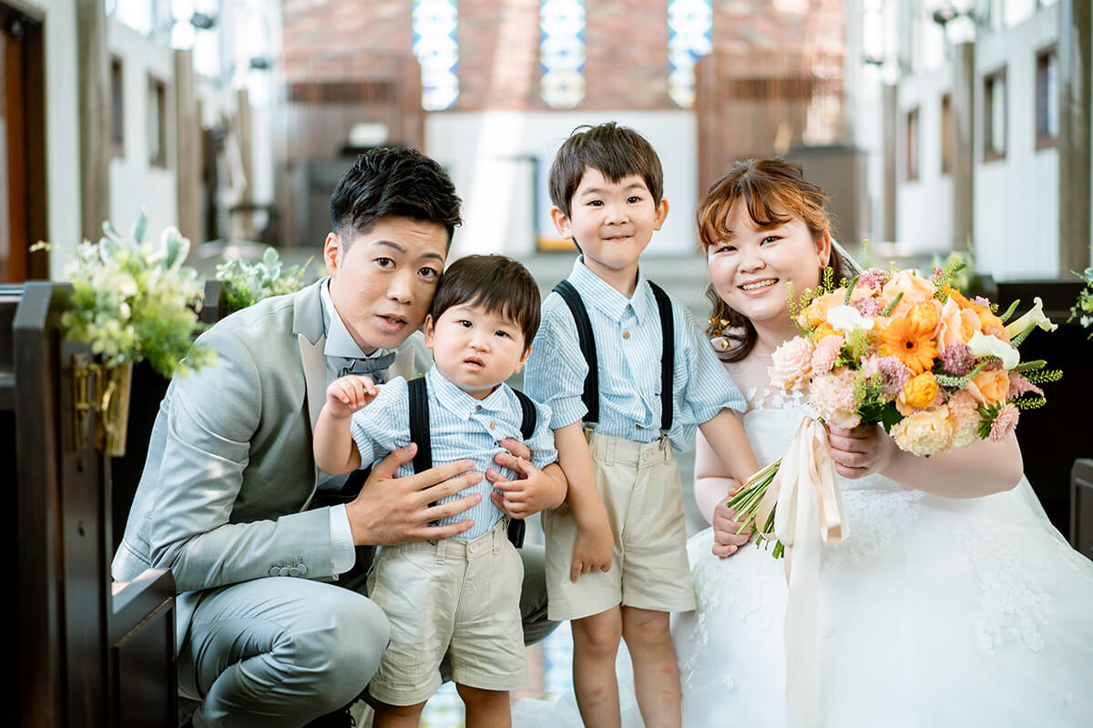ぶどうの森で行われた結婚式では、お子さんが大活躍。可愛らしいリングボーイが大切な指輪を運ぶ姿に、会場中が思わず笑顔に。自然に囲まれたあたたかな空間の中、ご家族の絆がより一層深まる一日となりました。