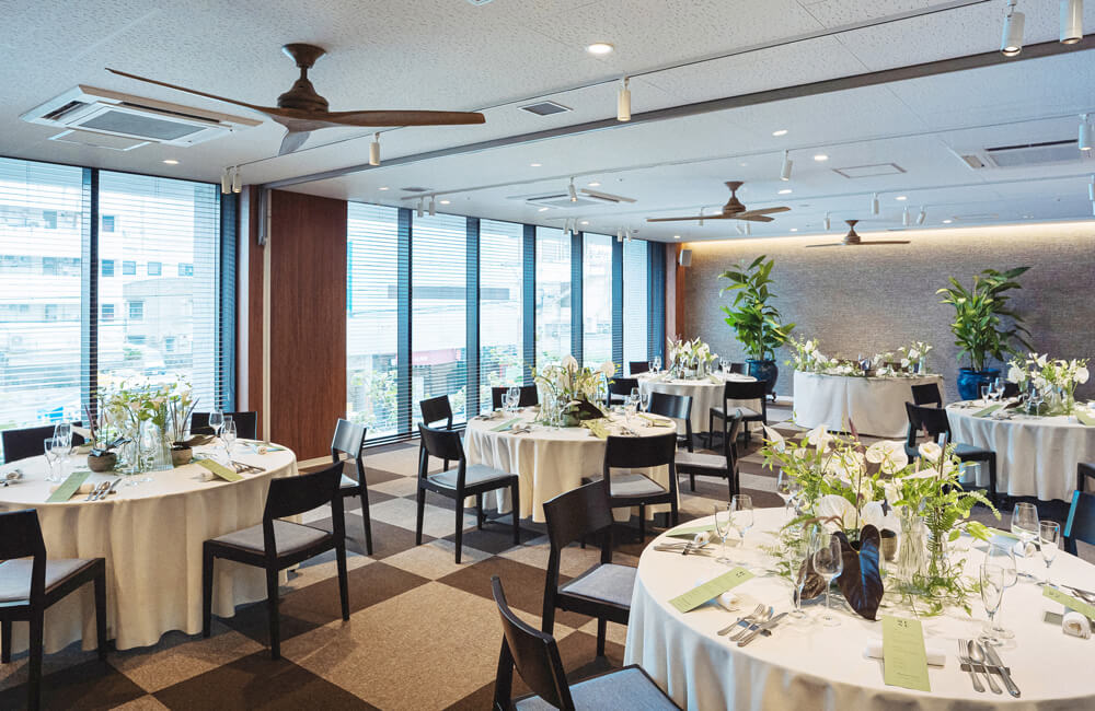 移動も不要でスムーズ。少人数のカジュアルな会から大人数の華やかなパーティまで対応可能です。
