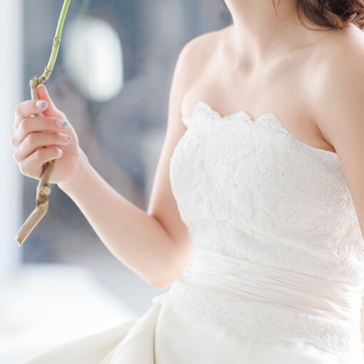 また、披露宴中などは、特に新婦様の胸より上の部分に注目が集まるためデコルテのデザインも確認が必要になります。