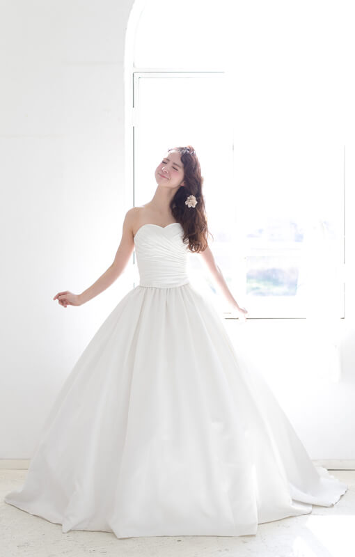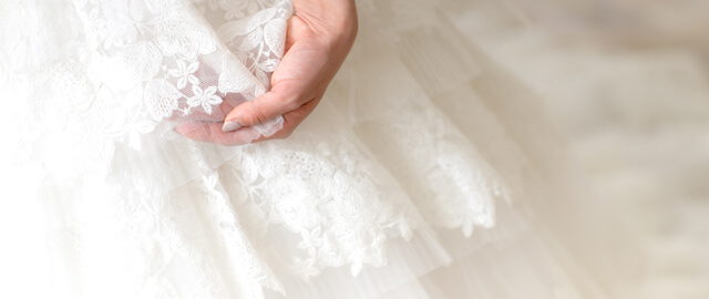 次にバックスタイルのチェックです。裾がロングトレーンの場合は、長さをチェックしましょう。例えば小さな挙式会場でとても長いロングトレーンなど、会場の規模に合わせないとちぐはぐな印象を受けます。トレーンの長さや大きさは、会場とのバランスを重要視しましょう。