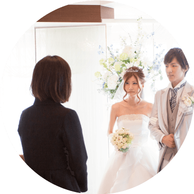 入場から退場まで、お打ち合わせで決めた挙式の流れをなぞります。お辞儀の仕方、歩き方、腕の組み方などもお伝えします。