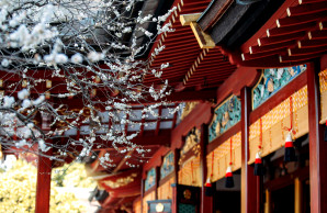 「100年後のスタンダード」をテーマに2012年に新築された社務所は、伝統的な技法と現代的なデザインが融合した空間。特にお札お守り授与所は、世界的なインテリアデザイナーが手掛けたことで話題を集め清潔感と可愛らしさを感じさせる設計になっています。古くは大陸へ渡る人々が航海安全と事業成功を祈願したことから方除け・厄除の信仰も篤く、現代でも新たな生活や人生の節目を迎える方々が参拝されます。おふたりの船出にふさわしい場所です。