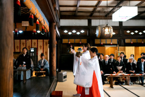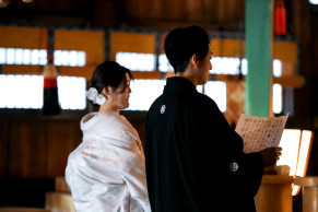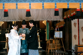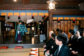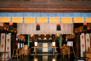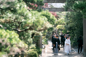 地域の文化と信仰が息づく、緑豊かな珍種の森と歴史ある社殿を背景に、おふたりの門出を祝う厳かで温かな儀式が叶います。現在は女性の宮司が神事を執り行っており、やわらかくあたたかな雰囲気に包まれた挙式が実現します。地域とともに歩んできた社として、人々に愛され続ける寄居諏訪神社は、人生の大切な節目にふさわしい場所です。