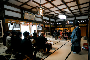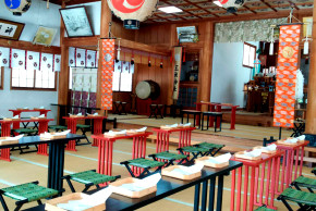 新潟市の中心部にありながら緑に囲まれ、住宅ひっそりと静かな佇まいを残す新潟大神宮には、皇大神宮の御文霊を鎮座。皇家の神寺を行う事を許された神社である伊勢神宮の御分社です。明治13年の新潟大火で建物は焼失したが御神体は安泰。明治17年に現在の社殿が再建されました。御祭神は天照皇大神、豊受大神。参道途中には、小説家坂口安吾生誕の碑があり、神社付近には安吾が晩年過ごしたお屋敷の「安吾風の館」もあります。凛とした静寂の雰囲気の中、天皇家の神事を行う事を許された由緒正しい格式ある神社で、おふたりの人生の門出を祝います。