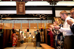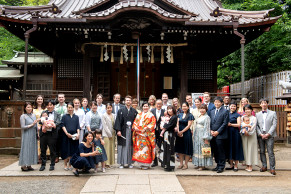 浅草神社の社殿は350年以上前に建立され、重厚な漆塗りが施された建物は国の重要文化財に指定されています。平成8年に補修され、社殿の色彩や漆は鮮やかに蘇り、鳳凰や麒麟、飛龍など幸福を願う霊獣が美しく描かれています。この重厚で優美な社殿で行う結婚式は、大変厳かで心に残るものになることでしょう。周囲には雷門や仲見世、浅草寺、スカイツリーなど東京の見どころが満載。遠方からのゲストにとっても嬉しいロケーションです。東京観光とともに、浅草神社での結婚式をお楽しみください。