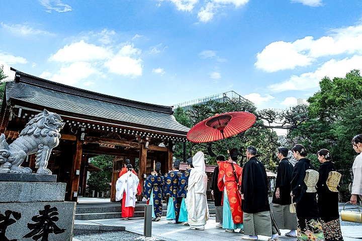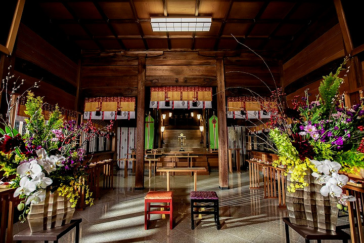神社挙式では珍しく、敷地内でお食事まで行っていただけることも特長です。