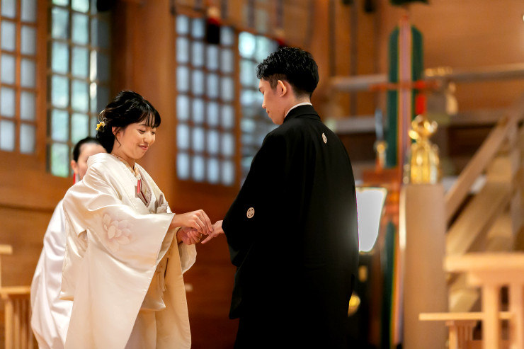 もちろん、神社婚では指輪交換の儀もありますよ!