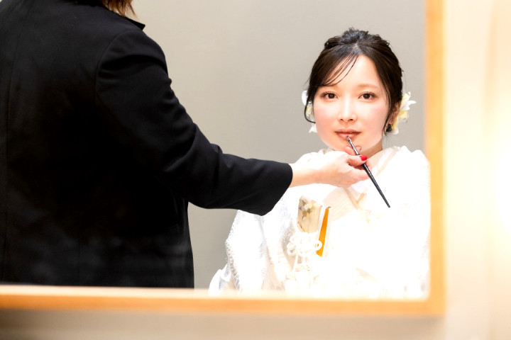 挙式はプランナー、美容師、カメラマンの3名体制で同行し、しっかりサポート。