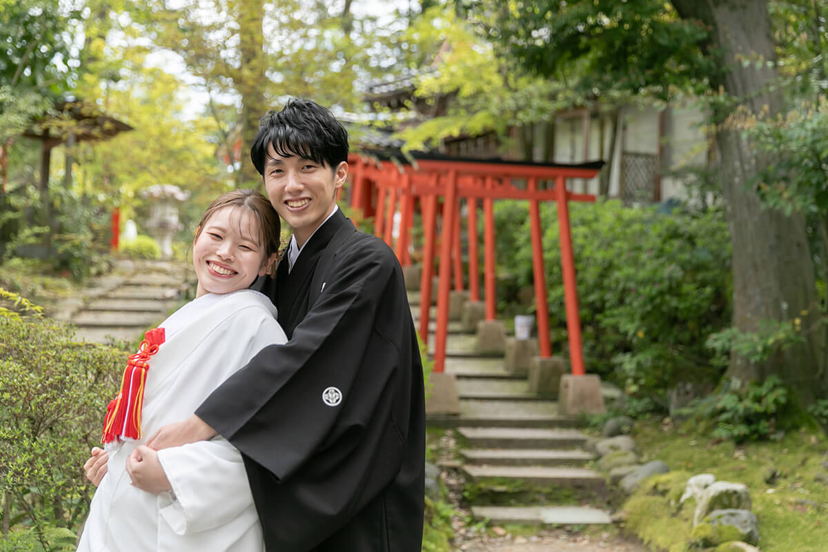 金澤神社にて、ご家族に見守られながら厳かに挙式を行いました。境内でのロケーションフォトも楽しみ、風情ある景色とともに思い出に残る一枚に。会食では笑顔と祝福があふれ、家族の絆が深まる心温まる一日となりました。