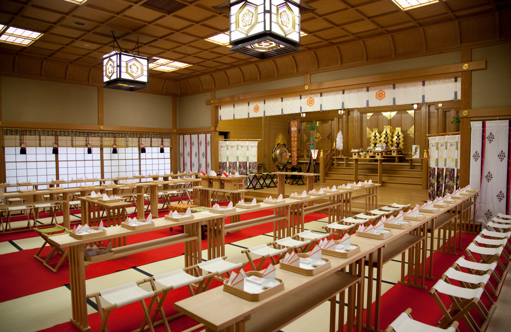 白山比咩神社は、全国三千余社の白山神社の総本宮であり、加賀国の一ノ宮として篤い崇敬を受け、「白山さん」と呼ばれて親しまれています。白山比咩神社のご祭神である白山比咩大神(しらやまひめのおおかみ)は、菊理媛神(くくりひめのかみ)ともいい、古来より「縁結びの神」として人々に信仰されてきました。白山比咩神社の神前結婚式は、古くから日本に伝わるしきたりに基づいて行われ、三三九度の盃をかわし、玉串を捧げ結婚を誓います。「縁結び」という言葉のとおり、主役であるおふたりだけでなく、親族を含めた「家」と「家」が結びつくという考え方のもと、 厳かな空気の中、進行していきます。日本の伝統美に包まれて普段では体験する事のない古きよき作法に基づいて忘られない結婚式を叶えてみませんか。