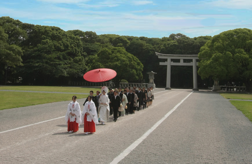 福岡縣護國神社にて和装結婚式を行った後に、提携の会場にてお食事をいただくプランです。
