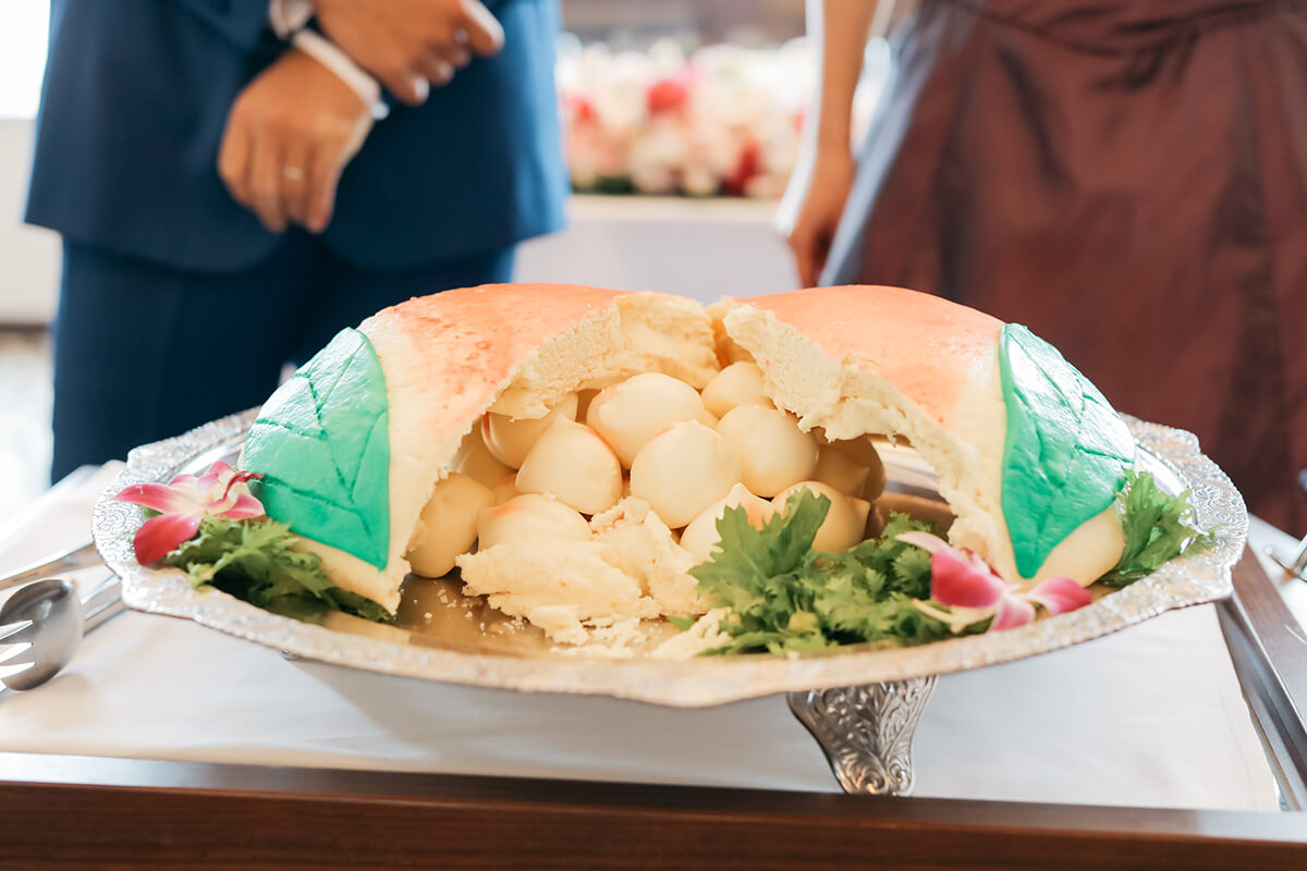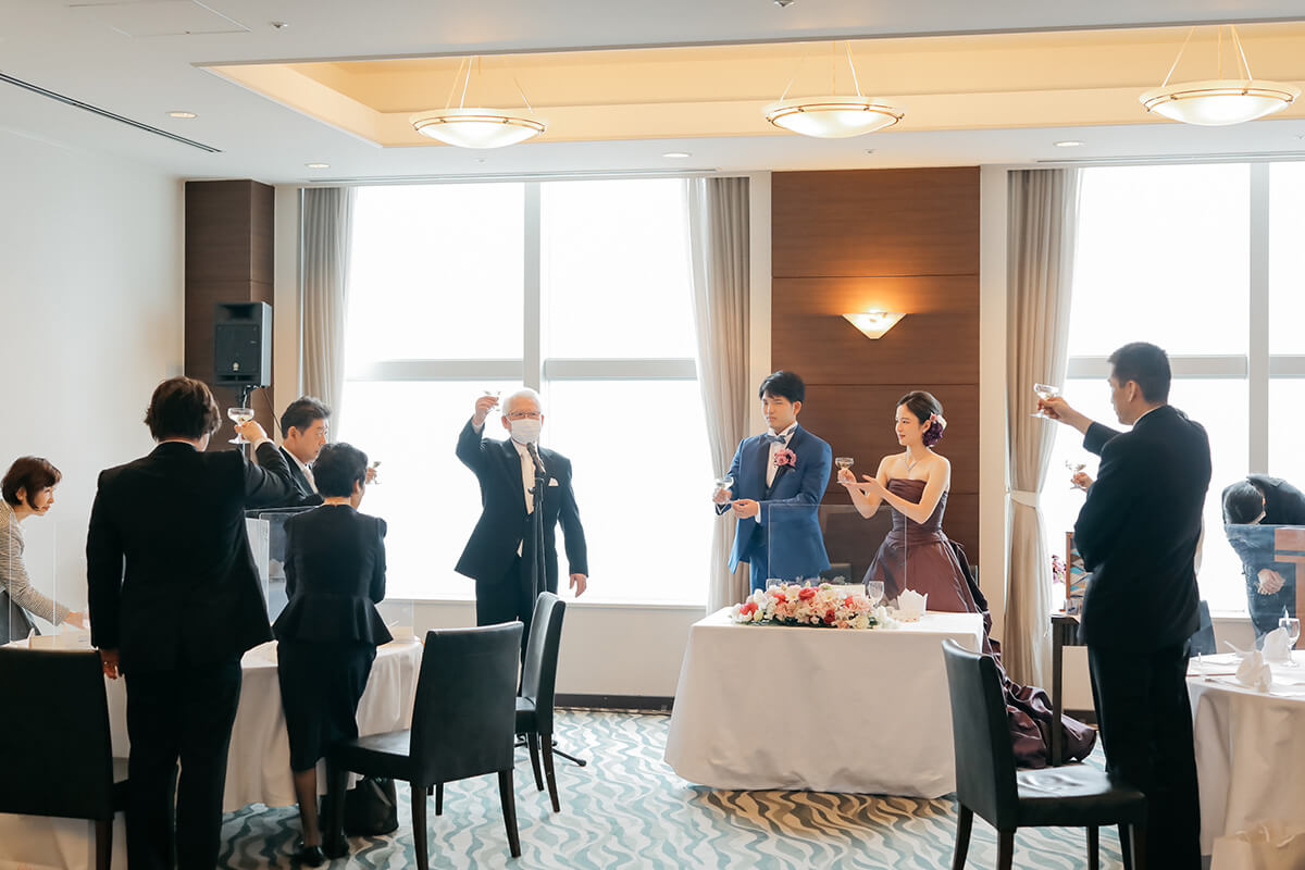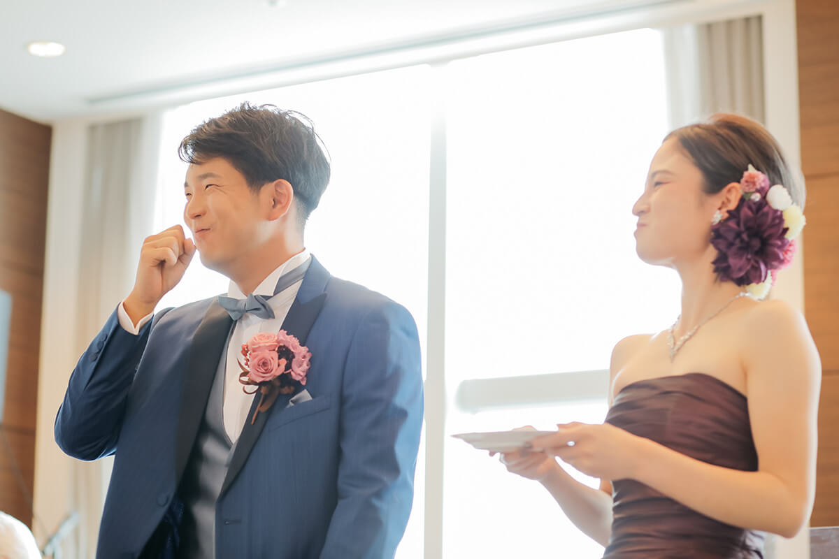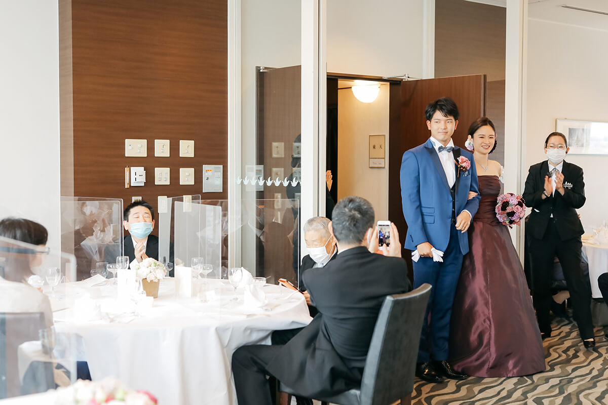 伊勢山皇大神宮にてご家族に見守られながら厳かに挙式を行いました。式後はホテルへ移動し、ドレスへお色直し。雰囲気をガラリと変えた華やかな姿に、家族から笑顔と歓声が。和と洋どちらも楽しめる、思い出深い一日となりました。