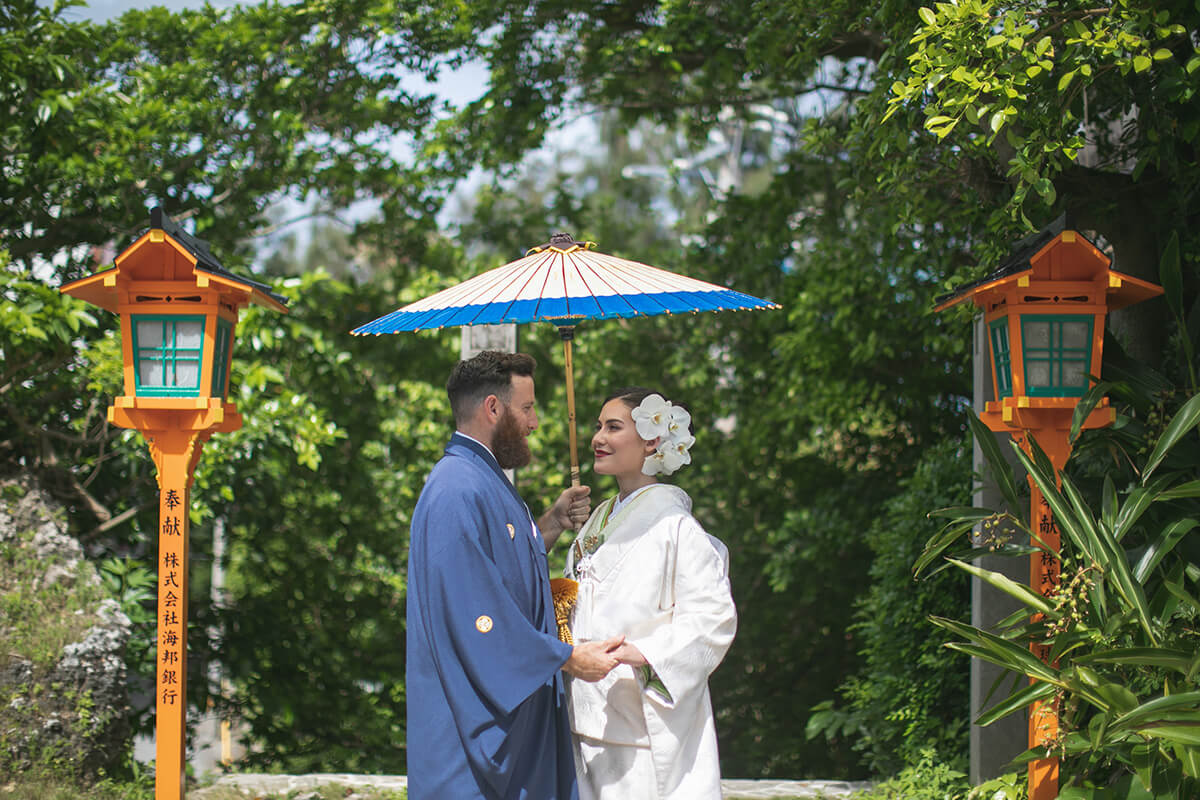 青空と海に囲まれた波上宮で、晴れやかな沖縄の空の下、心温まる結婚式を執り行いました。自然の光と波の音が祝福する中、おふたりの笑顔が輝く特別なひとときに。沖縄ならではの開放感あふれる、思い出深い一日となりました。
