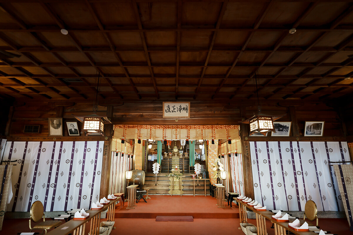 比治山神社にて和装結婚式を行った後に、提携の会場にてお食事をいただくプランです。