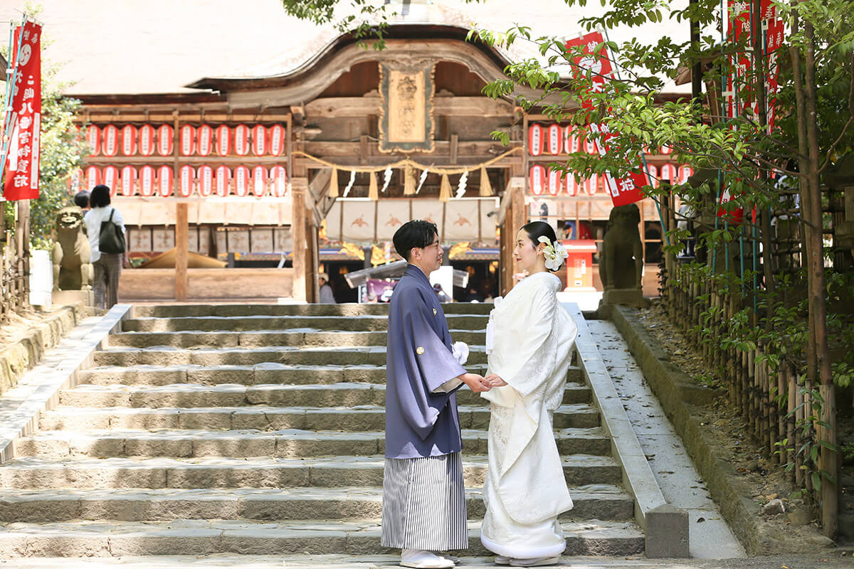 新緑に包まれた大崎八幡宮での厳かな結婚式