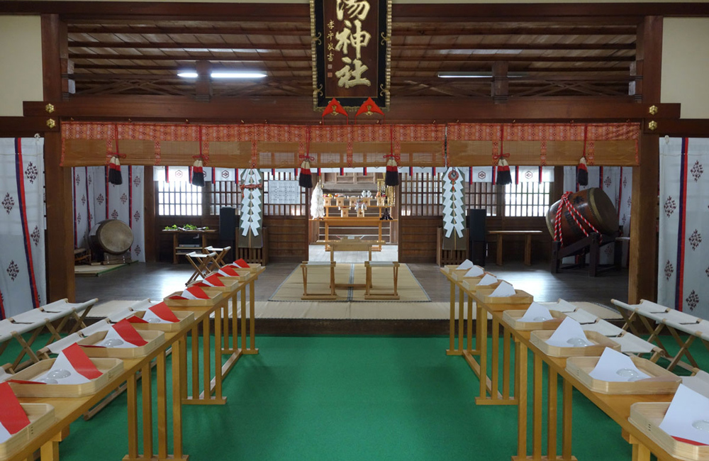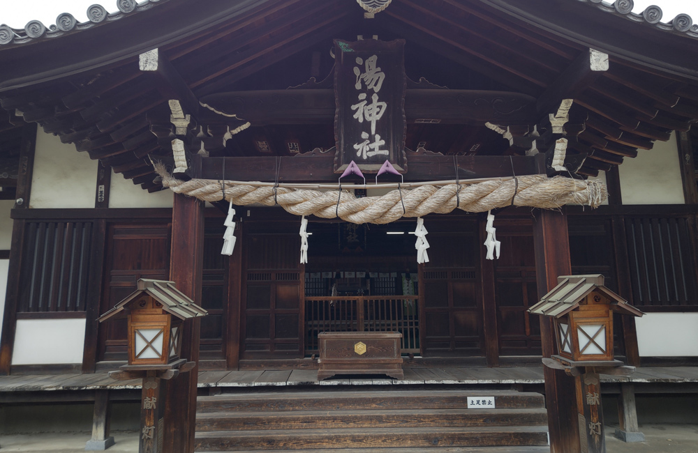 冠山山頂に鎮座する「湯神社」。道後温泉の守護神として、景行天皇の勅命により建てられたと言われる由緒正しき名社です。神代の昔、大国主命が病に倒れた少彦名命を温泉の湯につけたところたちまち治ったという伝説があり、この2神をお祀りしています。天災などで温泉が止まるたびに神楽を奉納して祈願してきたといい、この湯祈祷は今日では道後温泉祭として観光松山の春の先駆けとなっています。道後温泉本館や足湯も近く、道後の町を見下ろしながらゆったりとした一日をお過ごしいただけます。