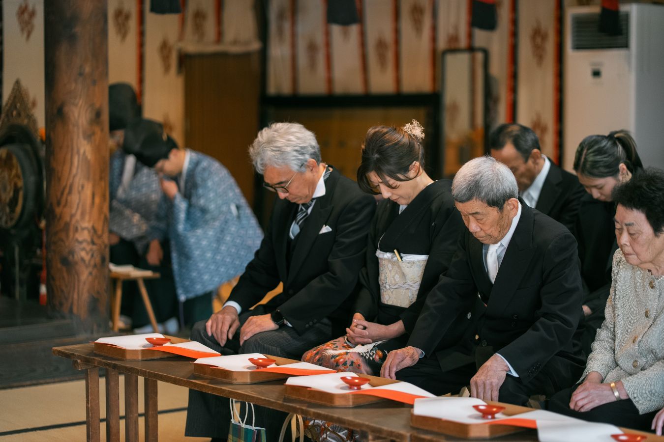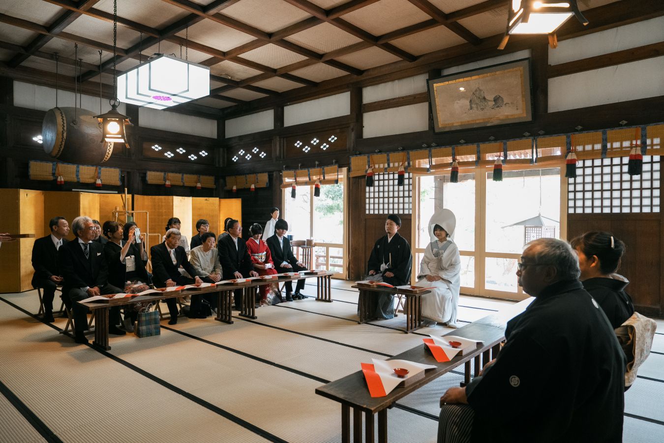 新潟大神宮でご家族に見守られながら、厳かに神前式を挙げられたおふたり。挙式後は洋装にお着替えし、ホテルへ移動して家族でゆったりとした会食を楽しまれました。