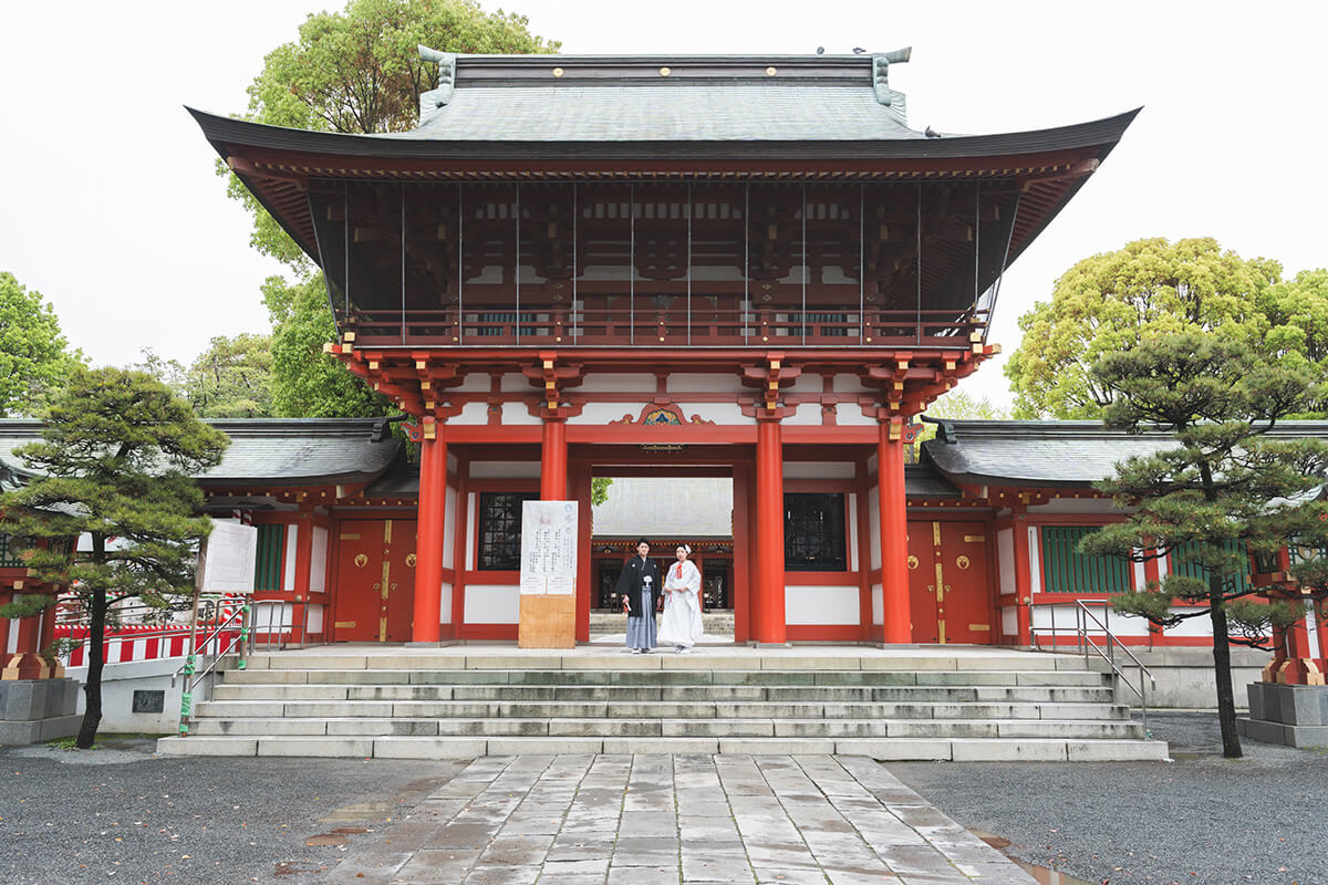家族に見守られた、藤崎八旛宮での厳かな結婚式