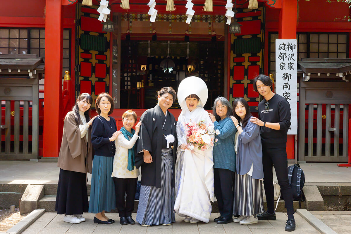 江島神社にて、ご家族に囲まれながら厳かに執り行われた結婚式。自然と歴史が調和する特別な場所で、絆を感じるあたたかな一日となりました。
