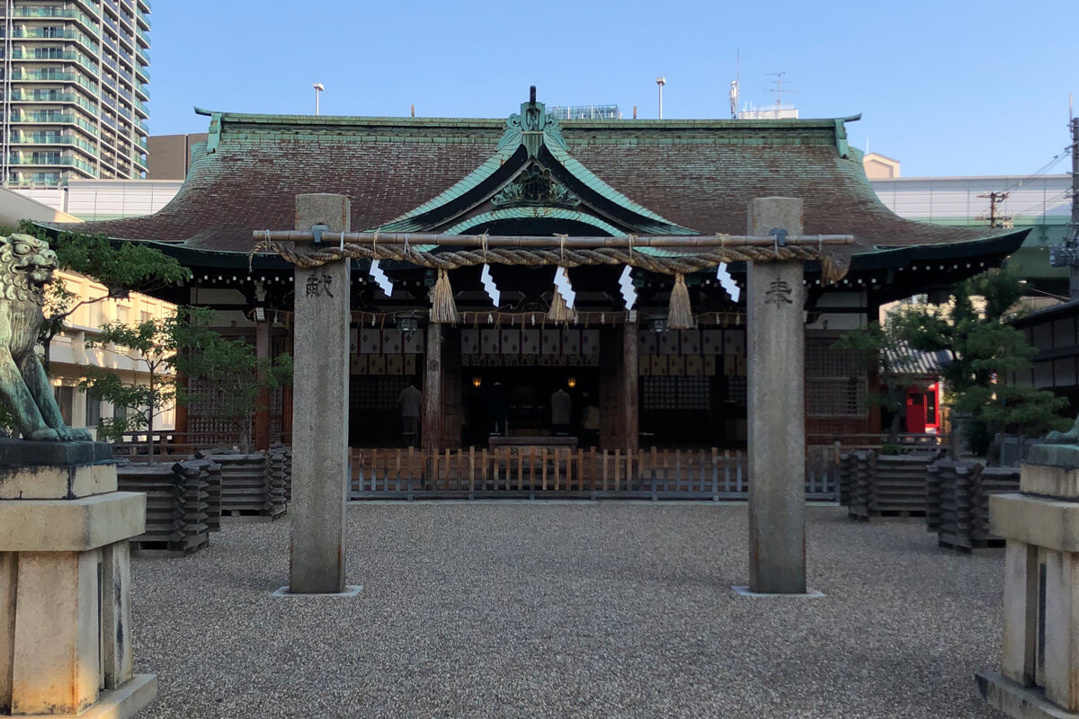 大阪市浪速区に鎮座し、推古天皇の御代に聖徳太子が創建した長い歴史を誇る神社です。本殿には天照皇大神や素盞嗚命など、様々な神々が祀られ、古くから市場鎮護の神として崇められてきました。平安時代からは漁業や商業の守り神として信仰され、特に十日戎の神事では毎年多くの参詣者で賑わいます。赤坂駅から徒歩2分の好立地にあり、遠方からのゲストも訪れやすいロケーション。さらに、天候を気にせずに本殿まで移動できる地下通路も完備されているため、雨の日でも安心してご利用いただけます。