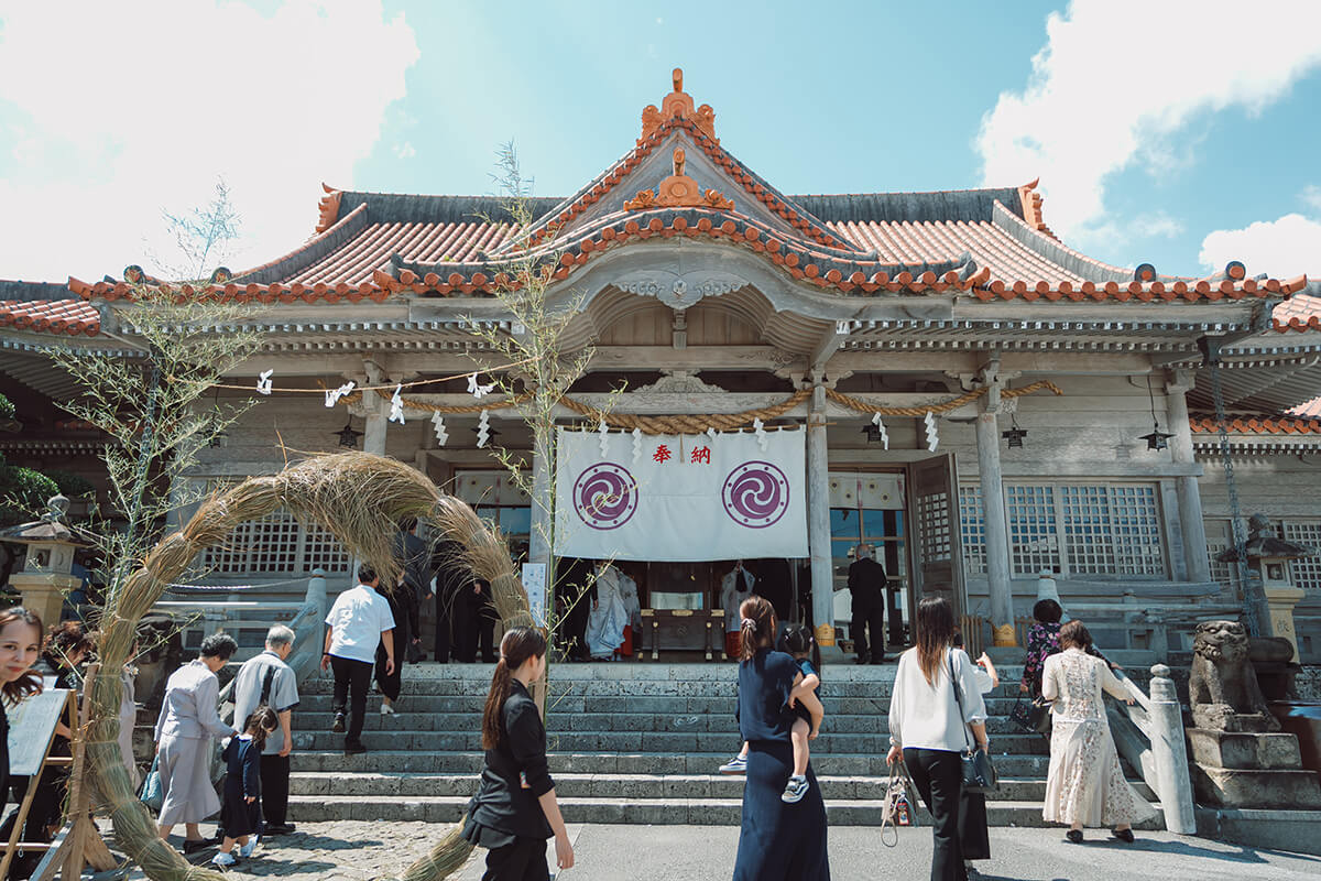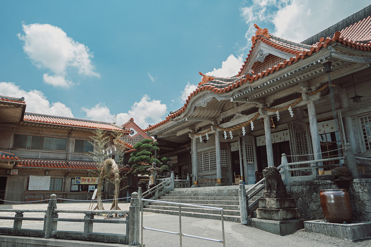沖縄本島中部、宜野湾市に鎮座し、神秘的な鍾乳洞を境内に抱える歴史ある神社。琉球八社のひとつとして崇敬されており、地元では中部最大級の聖地として親しまれています。ご祭神には、熊野三山にゆかりの熊野権現をはじめ、天照大御神や沖縄の古神道の神々が祀られ、願いを結ぶ「むすびの神」として幅広く信仰を集めています。