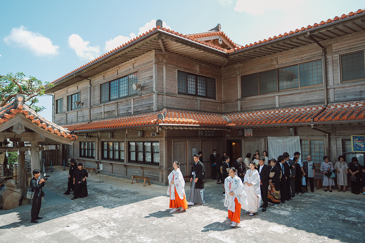 普天間宮にて神社式の後、近隣のレストラン「亜熱帯ガストロノミー FRENCH RESTAURANT L'atelier」にて会食・パーティを行うプランです。