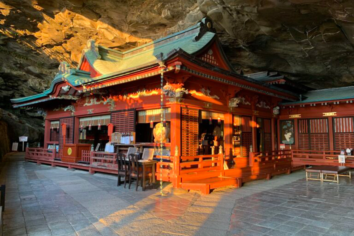 豊玉姫の産屋伝説を今に伝える鵜戸神宮。朱塗りの社殿が洞窟に映える神秘的な聖地。豊玉姫が主祭神を産むための産屋を建てた場所として知られる神社で、朱塗りの社殿が自然の洞窟内に鎮座する神秘的な空間です。 六所権現として祀られ、推古天皇の御代に岩窟内に社殿が創建されました。 四季を通じて多くの参拝者を集める社殿で、格式高い神前挙式が叶います。
