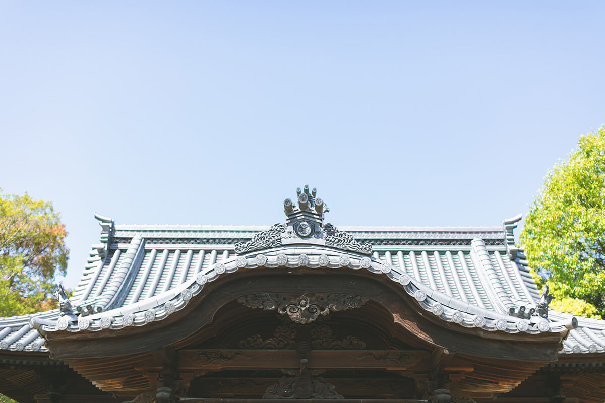 道後温泉から歩いて15分ほどにある「松山神社」。小高い丘の上にあり、松山城をはじめ松山の街並みを見下ろすことができる、景観の良い神社です。徳川家康公と菅原道真公が祀られており、社殿の随所に徳川家の紋である“三つ葉葵”を見ることができます。 元治2(1865)年に伊予松山藩が造営した東照宮社殿が、ほぼ当時のまま残っており、全国的にも貴重な現存する権現造の社殿として、愛媛県指定有形文化財となっています。 市街の喧騒を離れた自然豊かなこの地で、おふたりの門出を迎えませんか。