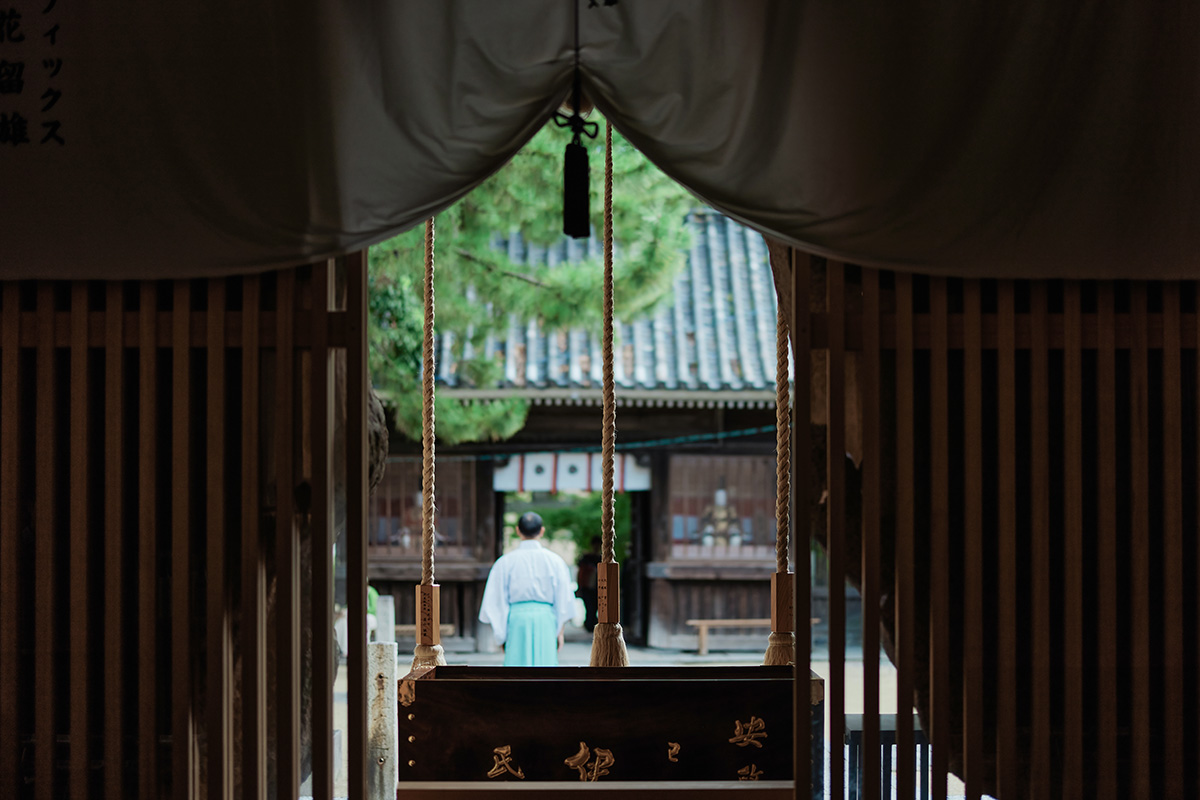 1350年の歴史を誇る鳥飼八幡宮。千貫御神輿の渡御で知られる、荘厳な神事が伝わる由緒ある空間。孝徳天皇の白雉二年に創立と伝えられ、1350年余の歴史を持つ古社です。 千貫御神輿の渡御は特に有名で、その荘厳かつ幻想的な様は、見る者の心を打つ伝統行事として継承されています。 長い歴史を刻んできた神聖な社殿で、厳かな神前挙式を執り行うことができます。
