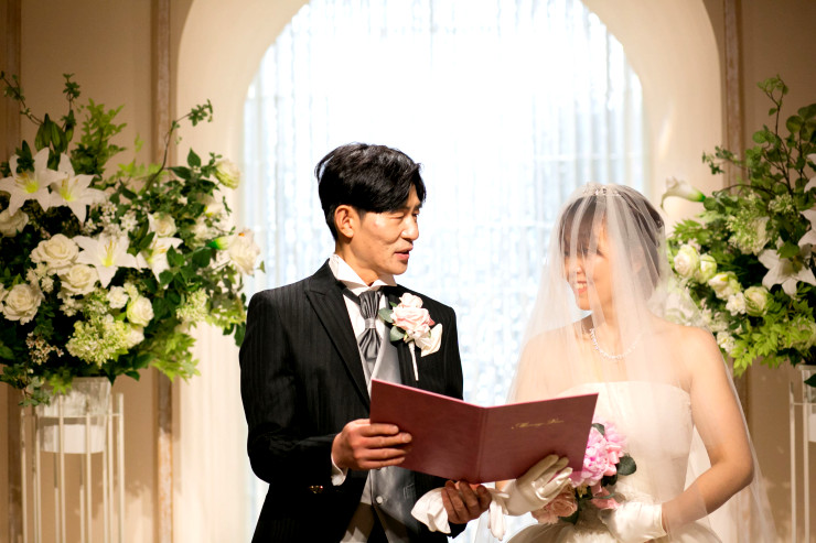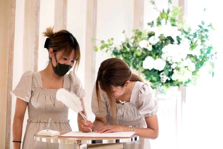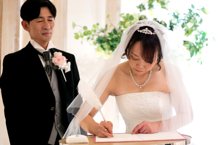 お二人と立会人様の名を連ねて頂いた結婚誓約書の披露