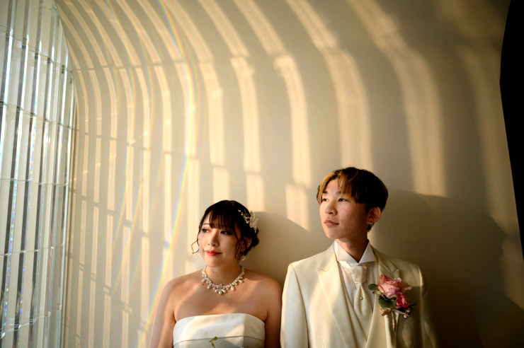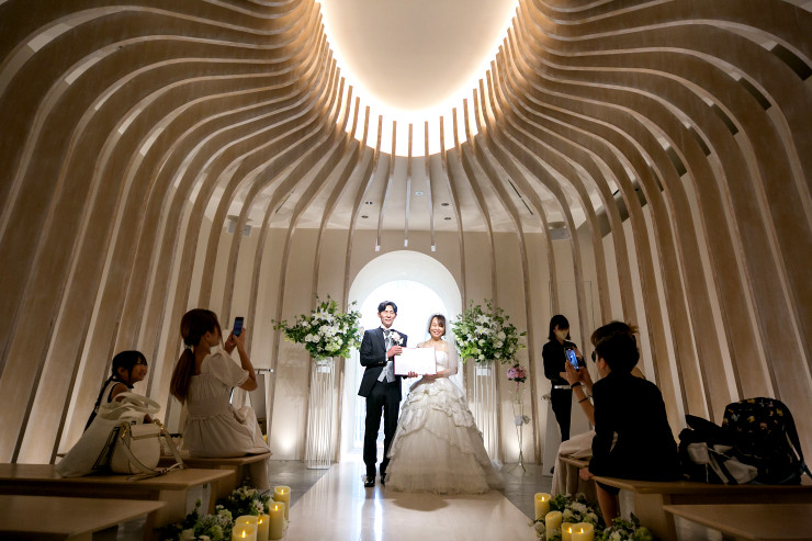 お二人の輝かしい未来を照らす自然光あふれるチャペルにての撮影でした。