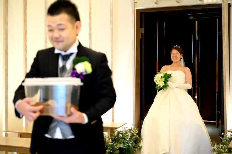 愛ガメのシンバ君とどのような姿になるか新婦様の仕上がりを心を躍らせながら待ちます。