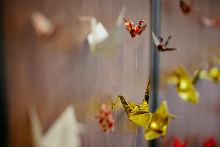 そして!この背景にはなんと「折り鶴カーテン」が…!