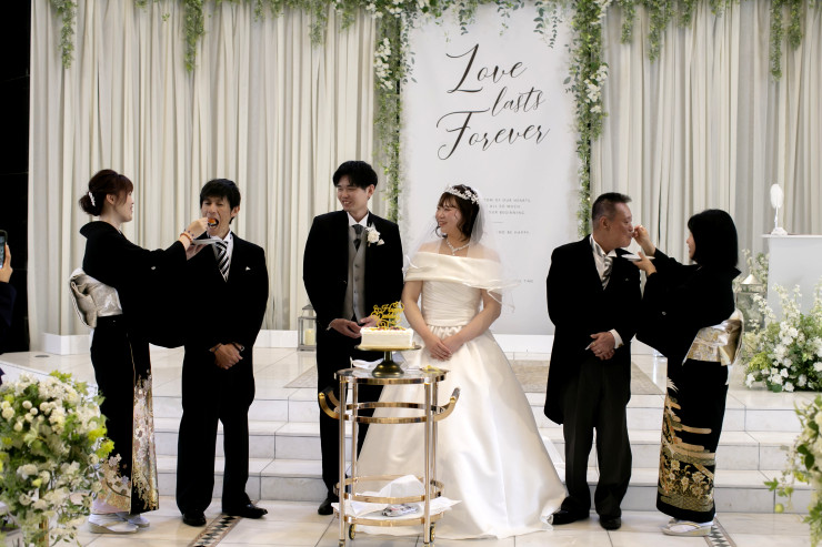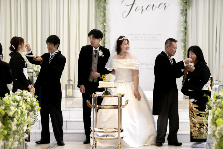 お父様お母様のように、これからもずっと仲良く歩んでいこう――そんな想いを込めながらケーキを頬張る姿は、会場中の心を温かくしてくれるひとときでした😊